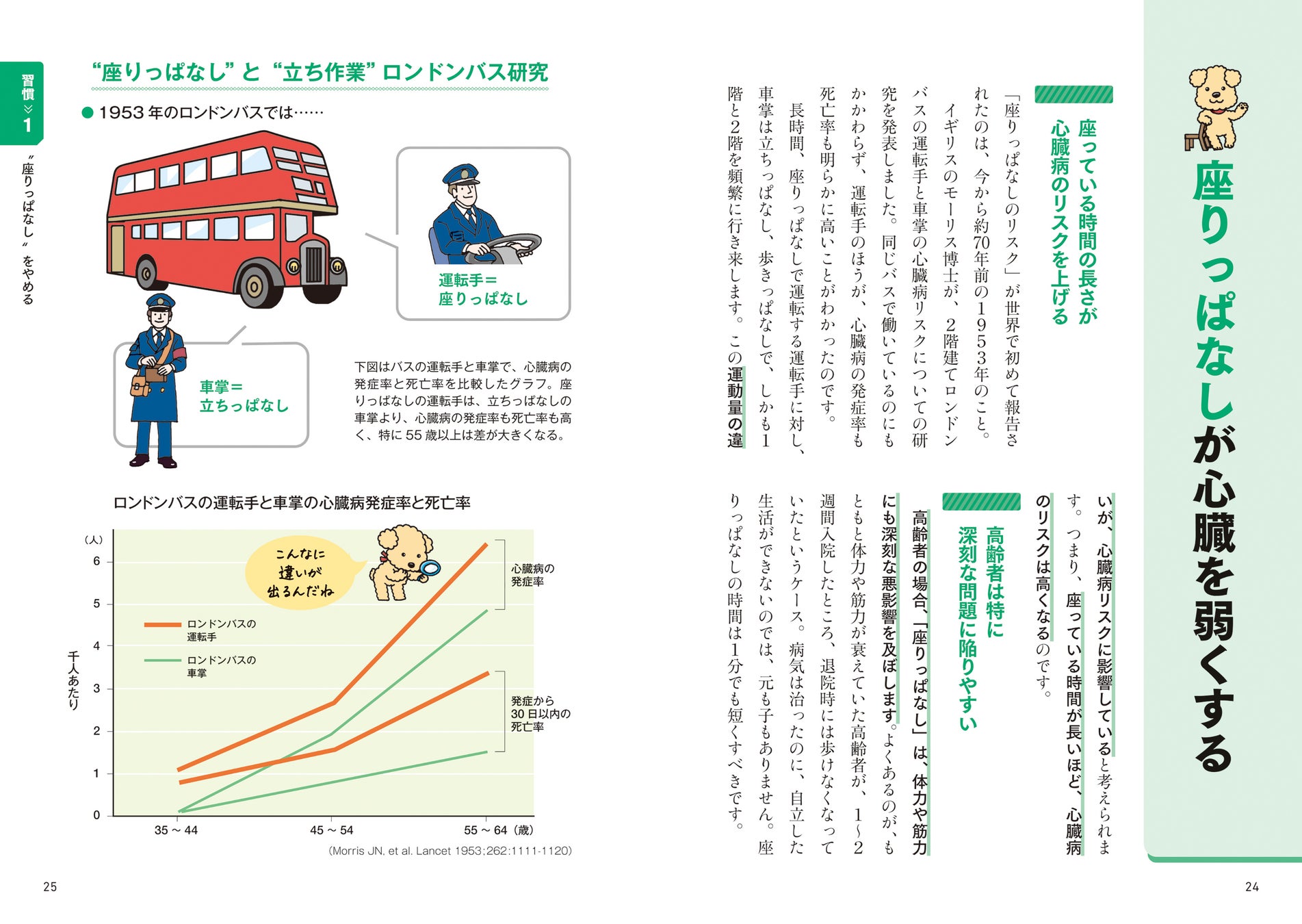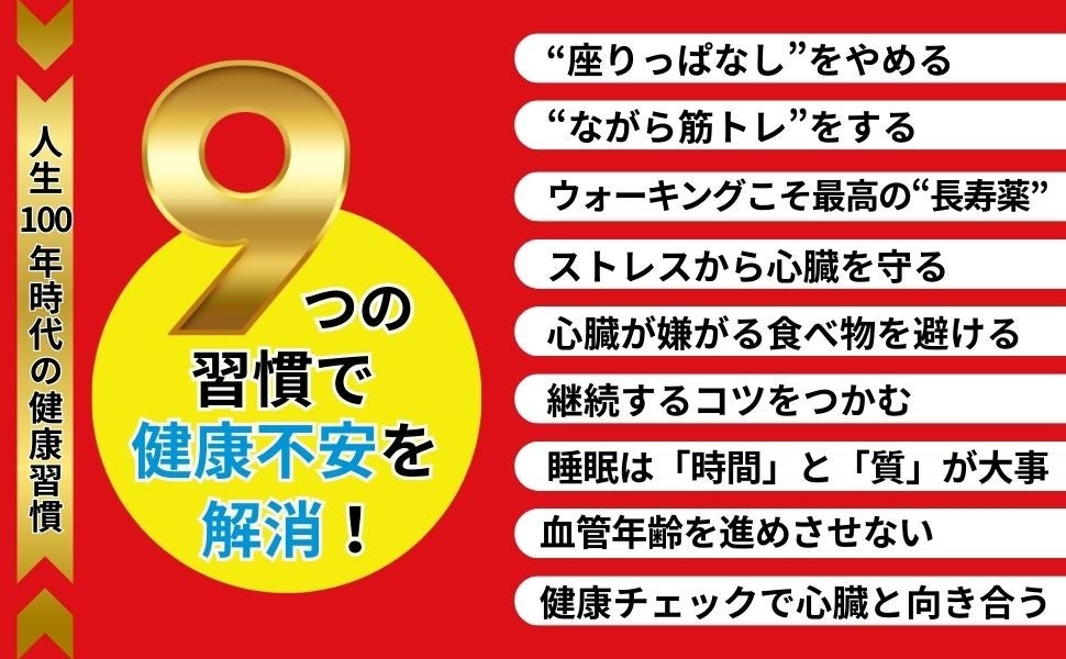 狭心症、心筋梗塞などは、気づかないうちに進行し突然発作が起きる恐ろしい病気ですが、日々の日常生活や運動により心臓の元気を保って、これらの疾患のリスクを抑えることができます。本書では、運動、食事、睡眠、ストレス緩和といった9つの実践しやすい習慣を紹介しています。