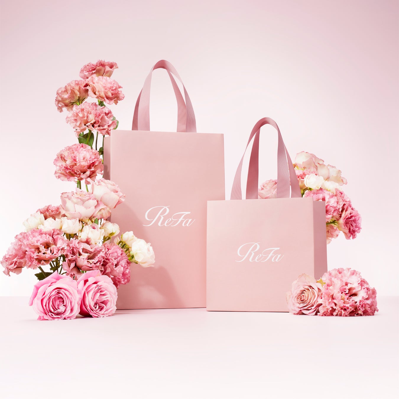 「2025年ReFa母の日キャンペーン」特別企画として、大切な家族へ渡すシーンを楽しく華やかに彩るピンクカラーの限定ショッパーやギフトラッピングをご用意。心躍る瞬間を鮮やかに演出いたします。