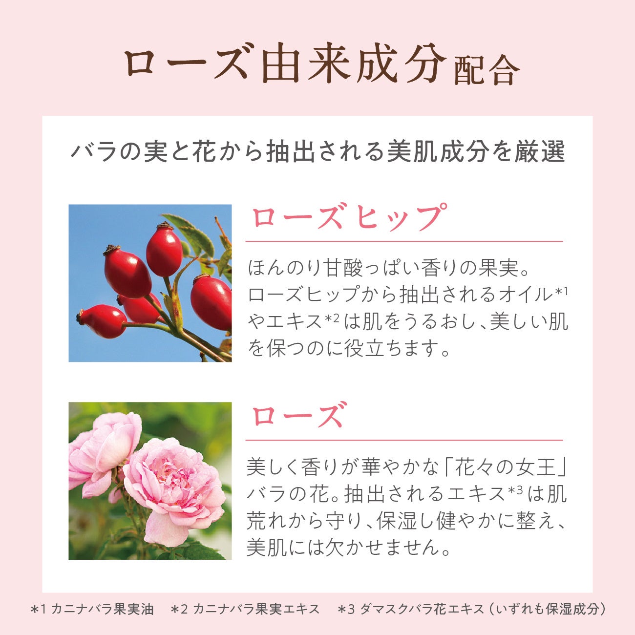 ローズヒップエキス(カニナバラ果実エキス)、ローズエキス(ダマスクバラ花エキス)、