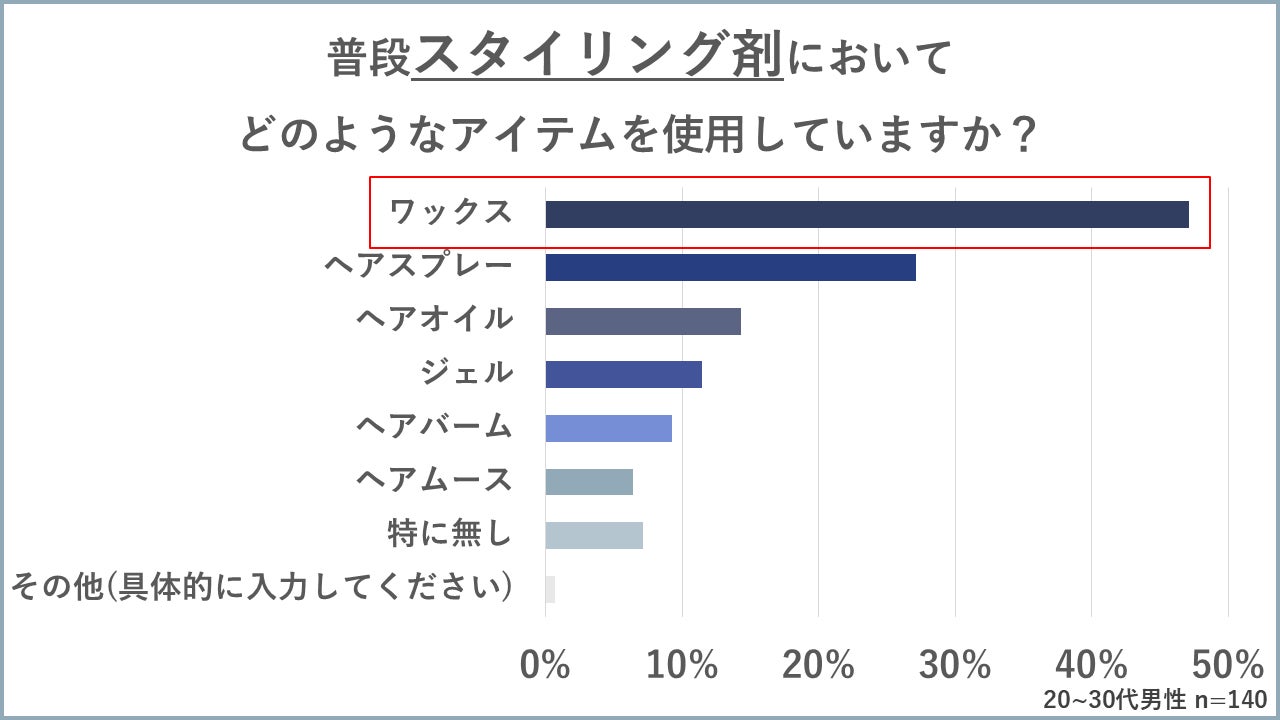 ④20~30代男性が普段使用しているスタイリング剤、第一位は「ワックス」。