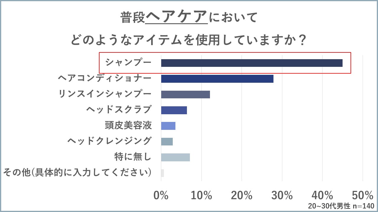 ヘアケア用品に関しては、シャンプーしか使用していない人が意外と多い結果に。