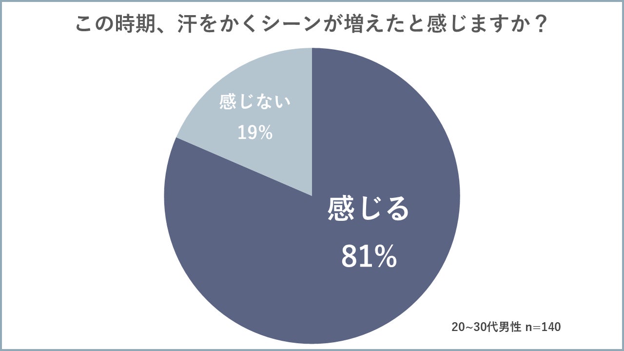 ①今年の4月中旬から「汗をかくシーンが増えた」と感じている男性は約8割!