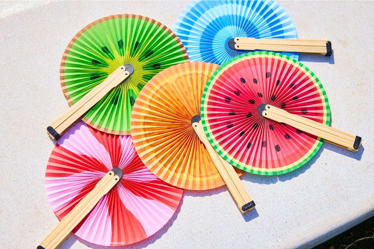 POP-UP SHOPにて税込6,000円以上お買い上げいただいた方を対象に、ポップな柄がキュートな折り畳み式のうちわをプレゼントいたします。