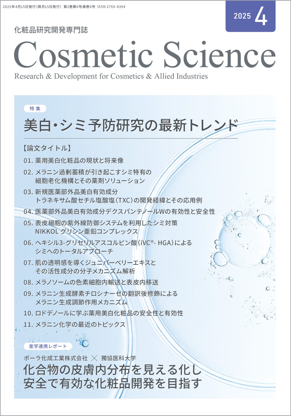 本号の特集は「美白・シミ予防研究の最新トレンド」と題し、以下の論文を掲載しております。
