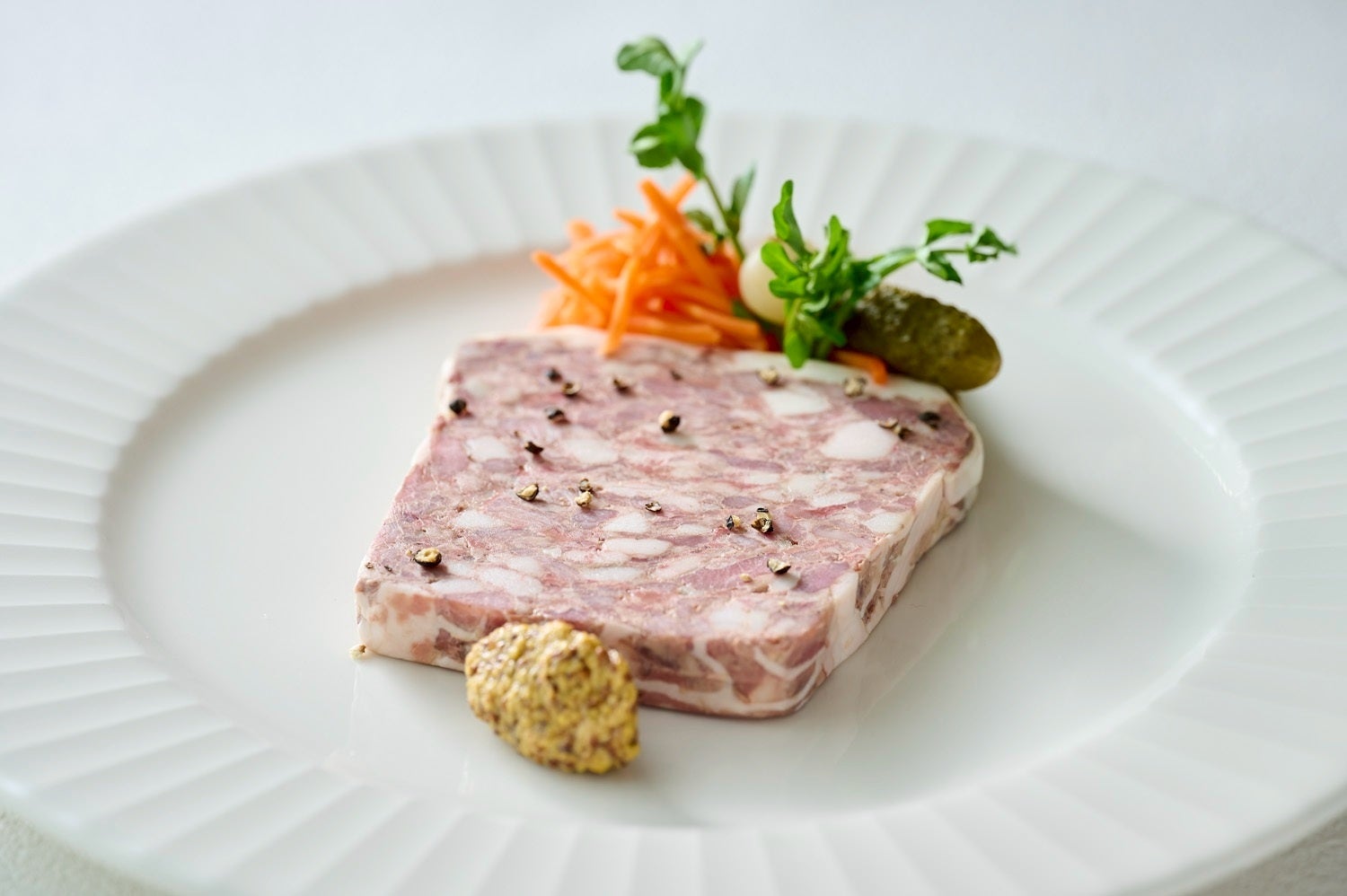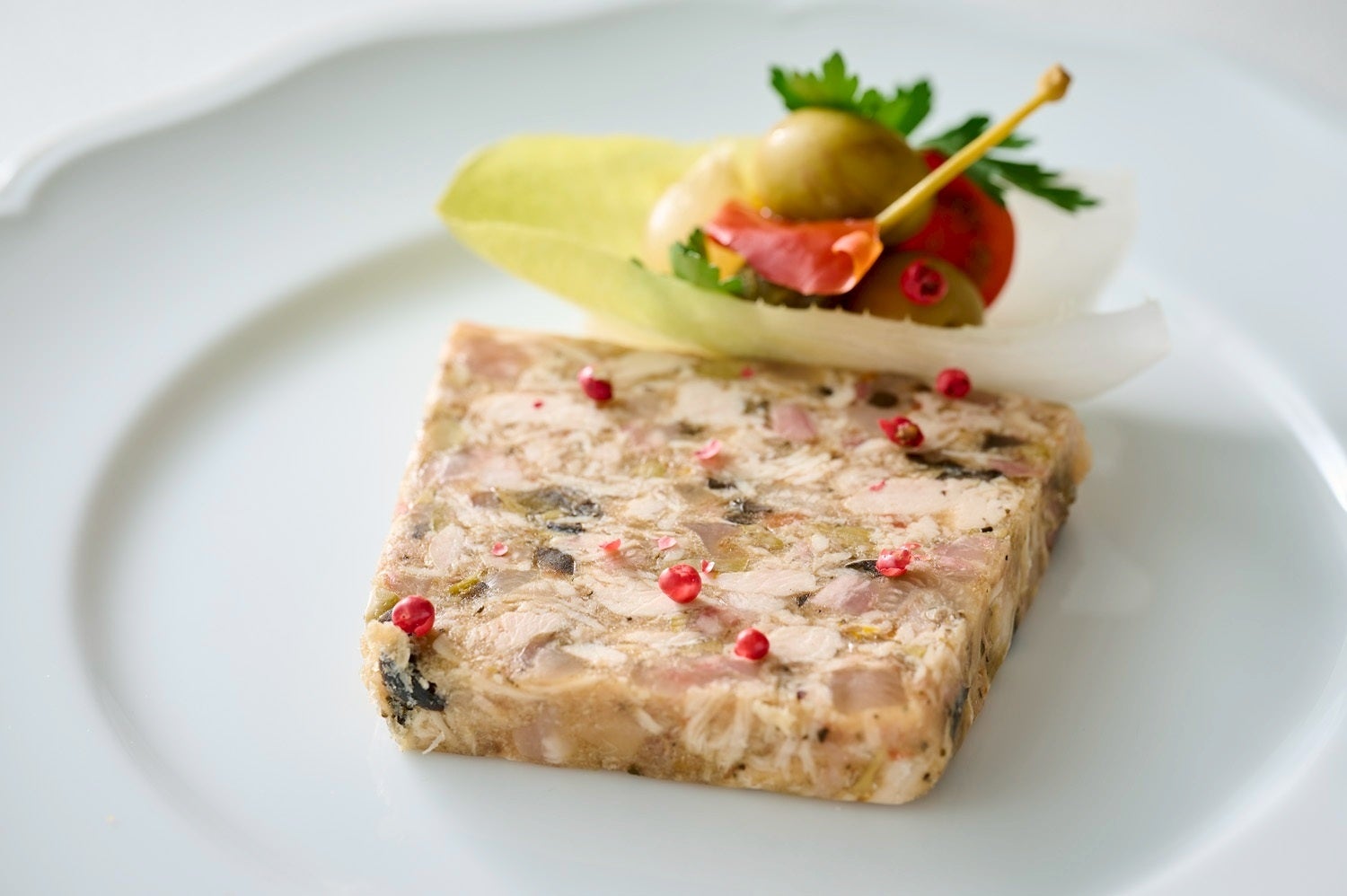 •美を意識したたっぷりな天然コラーゲンで固めた鶏と豚足のテリーヌ(1430円)