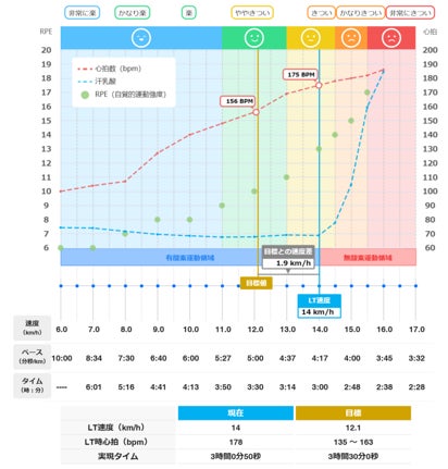 乳酸を汗で測定できる最新のデバイスを使って、あなたの最適なトレーニングペースのご提案や、想定マラソンタイムも算出することができます。