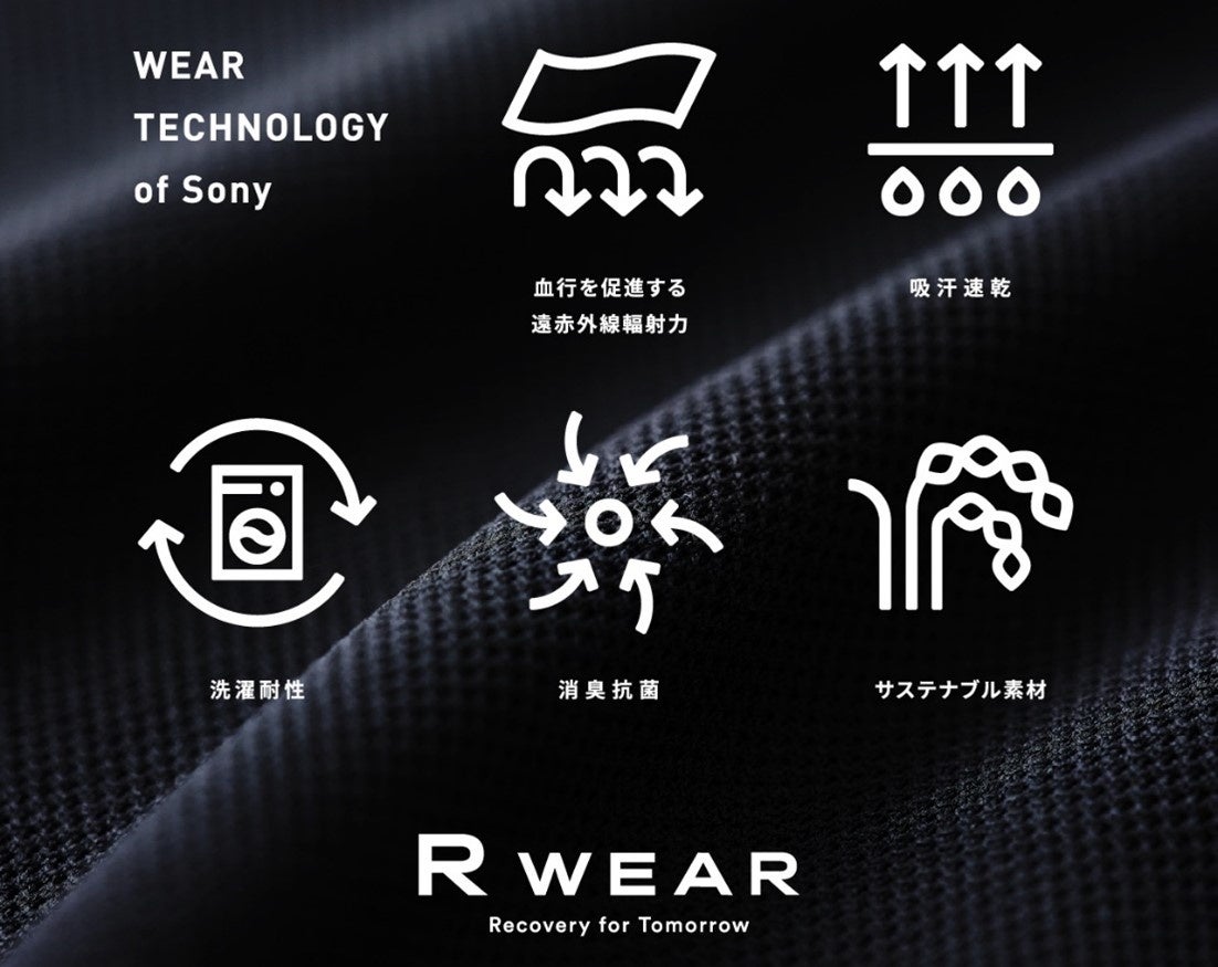 R WEARが採用する生地「R FAB™」はソニーグループ株式会社の技術である、米のもみ殻から製造した多孔質カーボン素材「Triporous」を活用した消臭・抗菌を兼ね備えた遠赤外線輻射を特長とする生地です。