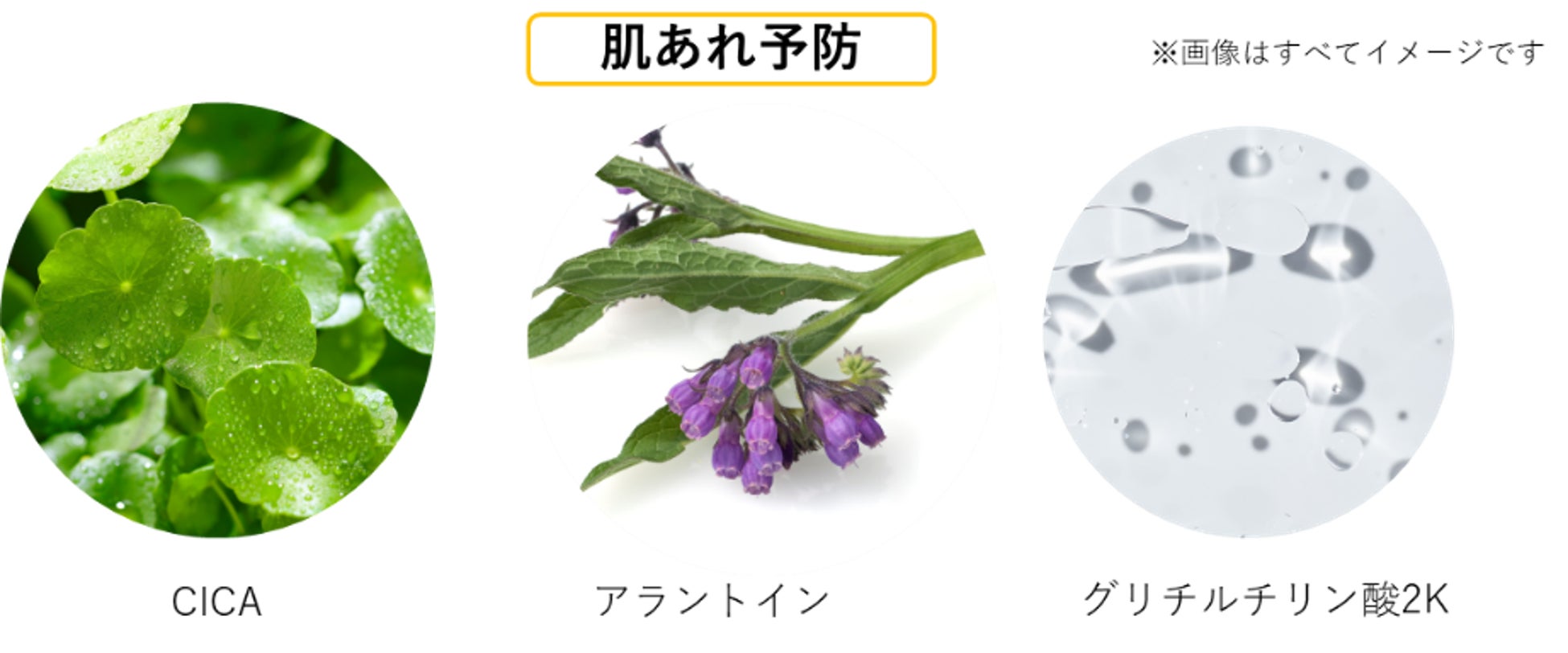 肌あれ防止(整肌)成分であるCICA※13、アラントイン、グリチルリチン酸2Kを配合。