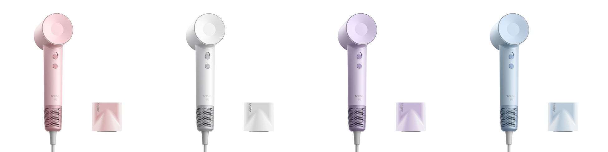 「Laifen SE スムージングノズル セット」は「Laifen」が誇る、独自開発の高速モーター技術により、超高速の風速21メートル毎秒※2の風を発生させることで速乾を実現しました。静音性やヘアケア性能にも優れ、ホワイトノイズに近い静音レベル59デシベル※3や2億個※4のマイナスイオンを発生する性能を誇ります。本体カラーはサクラピンク、ホワイト、オーキッド、ベビーブルーとデザイン性に優れたカラフルな4色展開でインテリアや好みに合わせて選ぶことができます。さらに付属の「スムージングノズル」を使用することで、よりスムーズな空気の流れを作り、優しい風でより滑らかな髪に仕上げることができます。