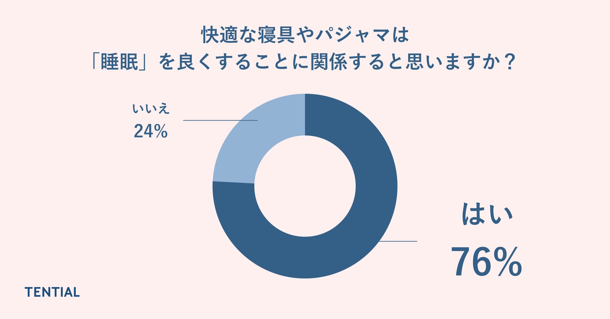 「快適な寝具やパジャマは睡眠を良くすることに関係があると思うか」との問いに対し、全体の76%が“関係がある”と回答しました。睡眠時間そのものだけでなく、寝具や衣類など“どう眠るか”という体感面への意識が高まっていることが伺えます。寝る環境を整えることが、より良い眠りと翌日のパフォーマンスにつながるという認識が、生活者の間に広がりつつあるようです。