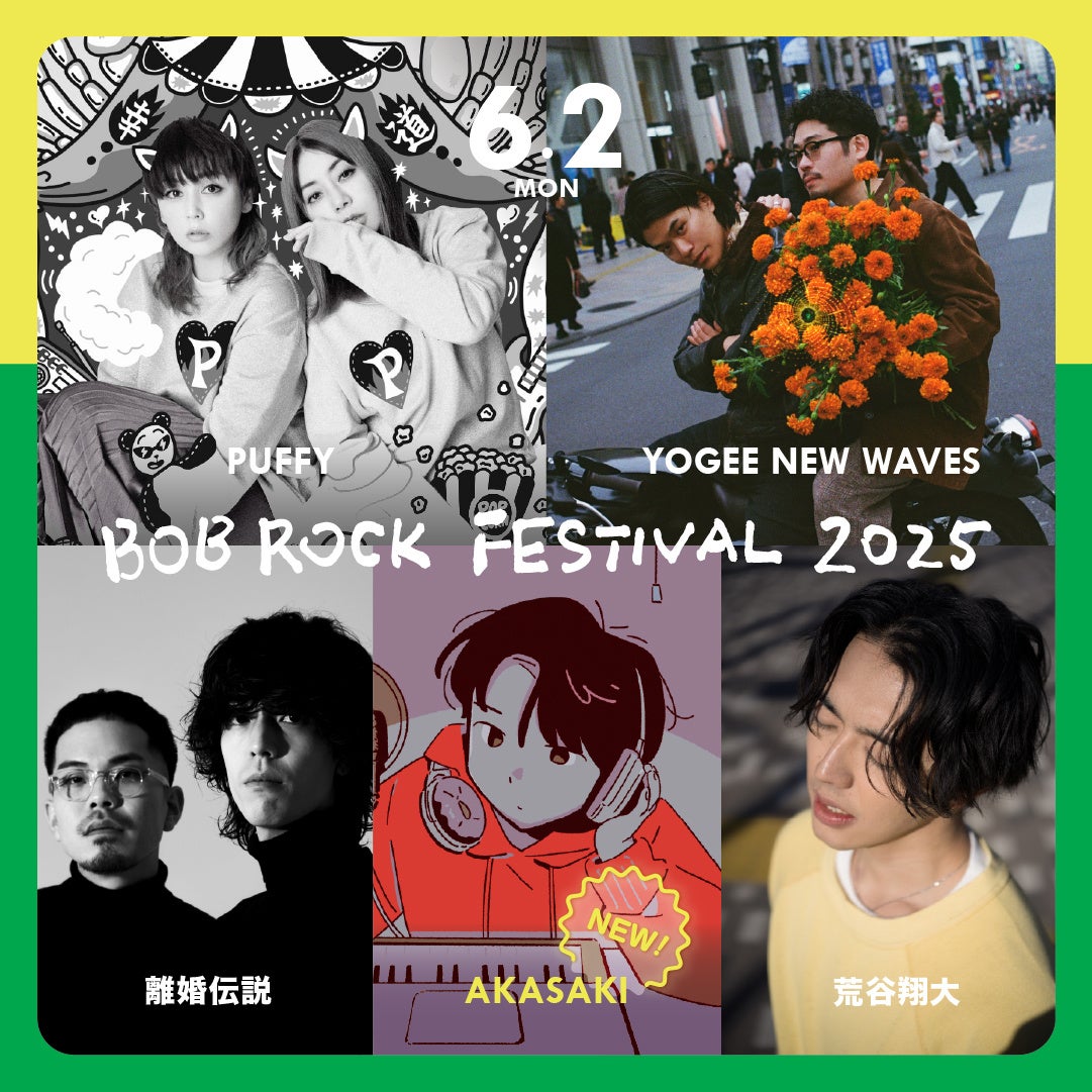 “平日“野外フェス「BOB ROCK FESTIVAL 2025」が6月2日(月)に大阪で開催される。音楽業界では異例の平日開催ながら、美容師やアパレル、飲食など土日に忙しく働く音楽ファンに嬉しいフェスとして年々注目を集め、今年で5回目。出演アーティストは先に発表されたPUFFY、YOGEE NEW WAVES、離婚伝説、荒谷翔大に加え、「Bunny Girl」がリリース5ヶ月でストリーミング再生数1億回、MV再生数5,000万回を記録した業界注目の新人アーティストAKASAKIの出演が決定。またMCには人気ラジオDJ板東さえかを迎える。会場は梅田から好アクセス、自然豊かな服部緑地野外音楽堂。週のはじまり月曜のお昼から、緑とお酒と音楽につつまれる贅沢体験をぜひ堪能していただきたい。お得な早割チケットは5月9日まで絶賛発売中。