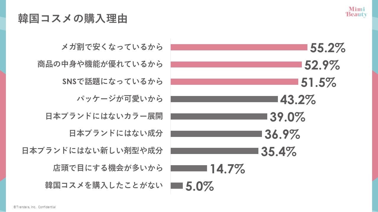 韓国コスメの購入理由は「メガ割で安価に買える」「商品が優秀」「SNSで話題」