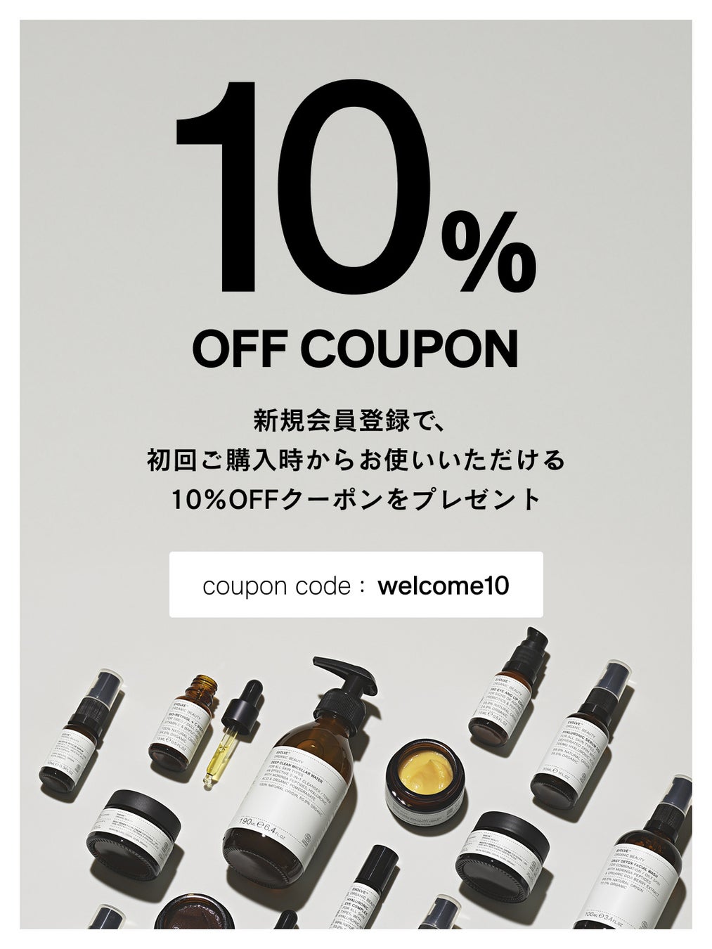 2025年1月、EVOLVE公式オンラインストアがオープンしました。会員登録していただくと、初回購入からお使いいただける10%OFFクーポンをプレゼント。ぜひご利用ください。