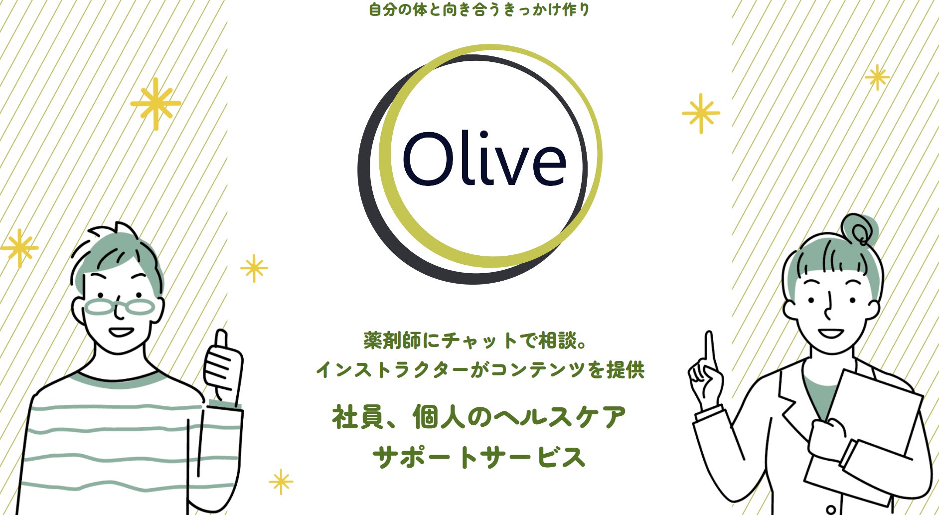 ウェルビーイングサービス「Olive」 は、チャットで気軽に薬剤師へ健康相談ができるコンテンツや、eラーニング、動画、コラムなどのコンテンツを提供し、ウェルビーイングに貢献するサービスです。企業が働き方改革の一環として社員の健康に対してサポートする必要性があるという考えのもと、企業と地域薬剤師を繋げる福利厚生サービスとして2021年12月に誕生しました。企業が社員への福利厚生として導入いただけるほか、個人での登録、利用も可能なサービスとなっていますので、勤務先等で前述のような福利厚生サービスが無い方も、個人単位で利用することができます。