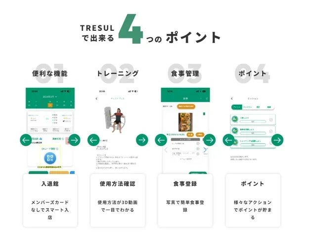 専用アプリ「TRESUL」がトレーニング記録やメニュー管理をサポート!マシンの使い方や、正しいフォームの確認もできて安心! -