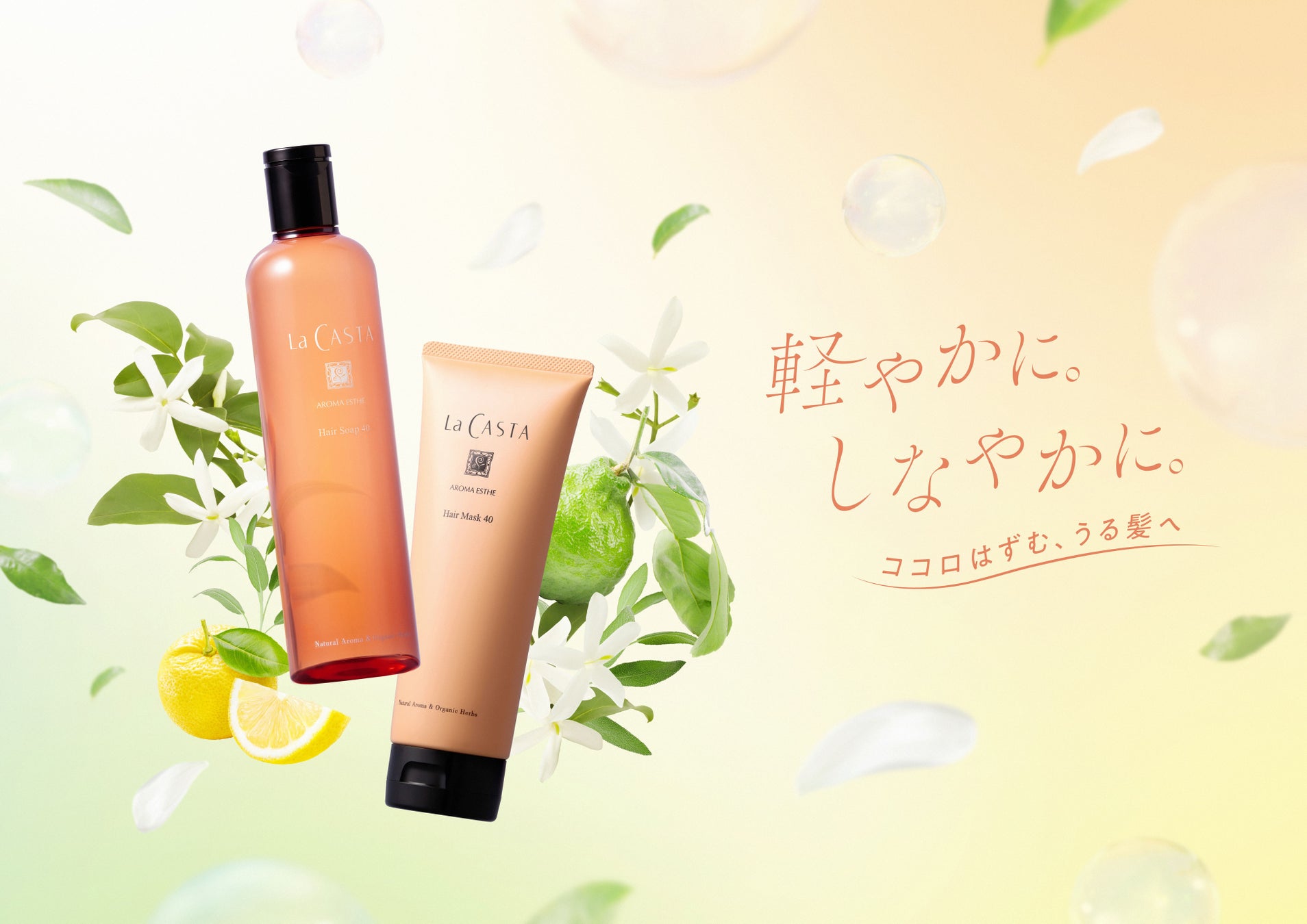 ボリュームダウンやスタイリングの崩れやすさなど、細くて柔らかい髪特有の悩みにアプローチする新シリーズ「アロマエステ 40シリーズ」。傷みやすくデリケートな髪と頭皮を、オーガニック植物成分やハーブエキスがやさしくケア。根元はふんわり、毛先までしなやかなツヤ髪へと導き、スタイリングしやすい髪を叶えます。