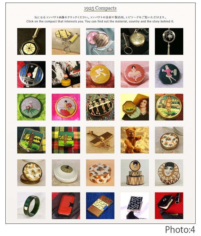さらに、各テーマページのコンパクト一覧(Photo:4)や、それぞれのコンパクトの紹介では製造時期、製造国、素材やエピソードなどの詳細情報(Photo:5)が掲載されています。