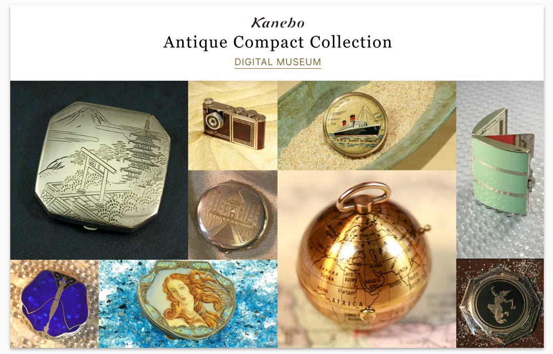 このたび、貴重な「カネボウ アンティークコンパクトコレクション」を年代ごとに分かりやすく纏めたデジタルミュージアムサイトを新たに公開いたしました。厳選された147点のコンパクトを通じて、その背後にある歴史や文化的意義を探ることができます。