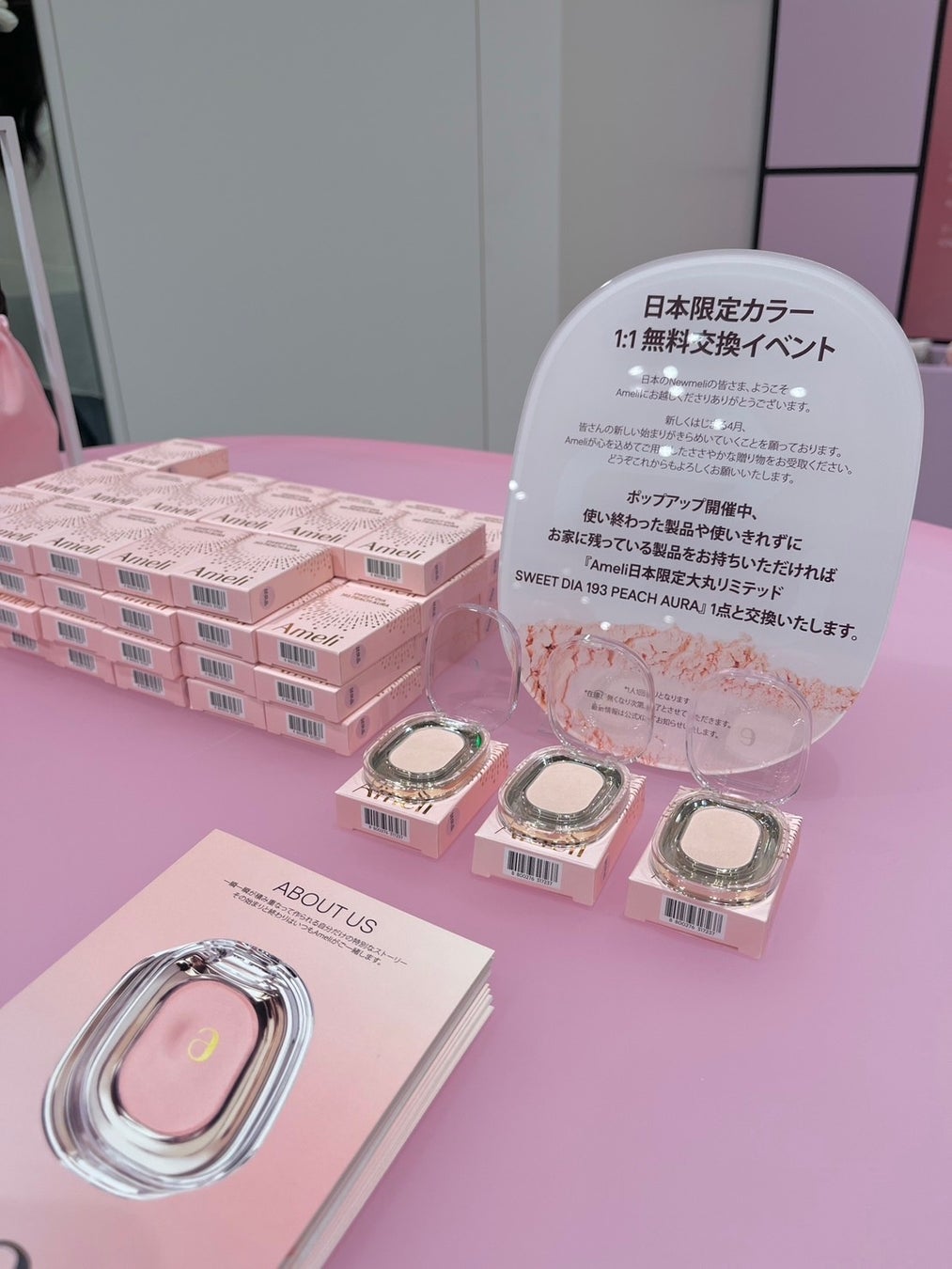Ameliは1996年、メイクアップアーティストとメイクアップ専攻者のためのカラーブランドとして始まり今日まで約340種類という、最多の色調処方を誇って韓国最多のカラーを持ち、メイクアップ商品を展開しております。Ameliのお客様である「Newmeli」がご自身に合ったカラーを見つけられるようサポートしております。今回のポップアップストアでは、Ameliの幅広いカラースペクトラムを直接ご体験することができます。