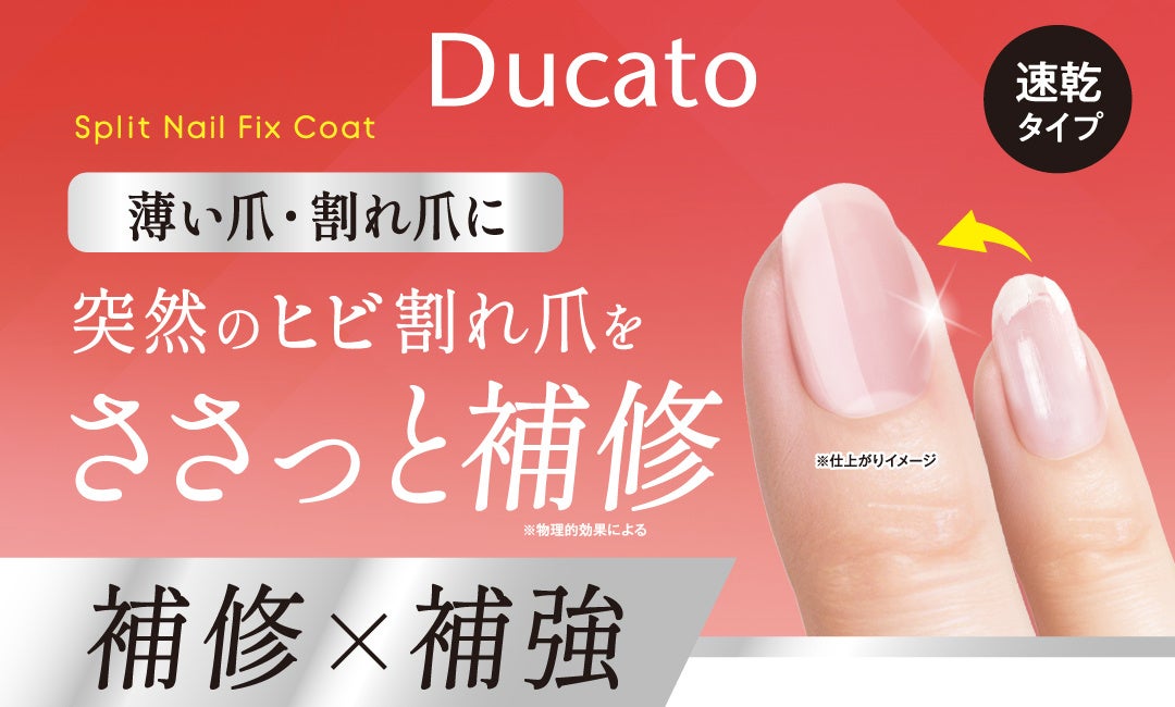 「デュカート 割れ爪補修コート」は、突然の爪の割れ爪に対応し、接着して補修するネイルコート。