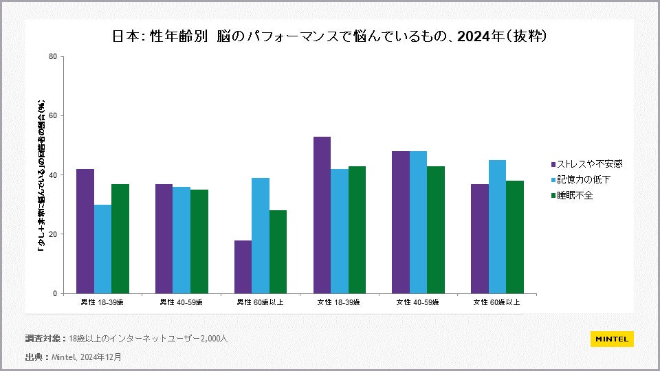 情報の出典元として【ミンテルジャパンレポート『脳のパフォーマンス(記憶力・認知力・集中力)向上に関するトレンド – 日本 – 2025年』より】の明記をお願いいたします。