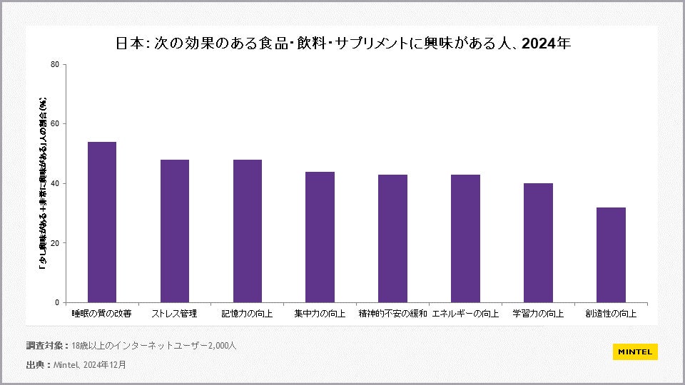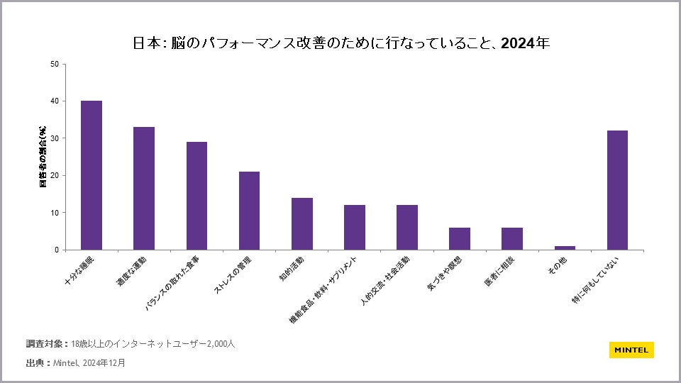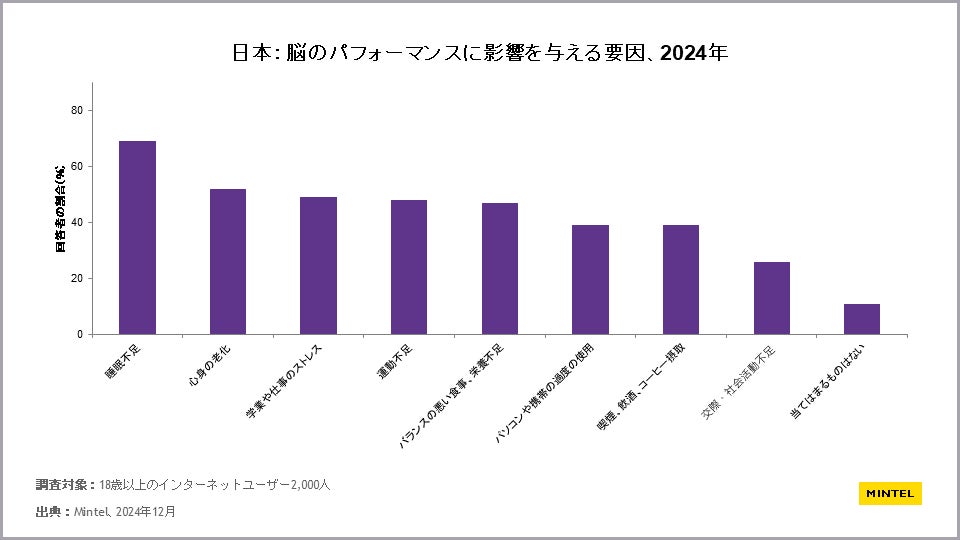 ※本リリースの調査結果をご利用いただく際には、必ず【ミンテルジャパンレポート『脳のパフォーマンス(記憶力・認知力・集中力)向上に関するトレンド – 日本 – 2025年』より】とご明記ください。