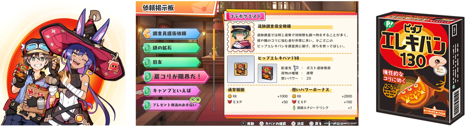 そこで、コリに悩むゲーム愛好家への新たな選択肢として、ピップエレキバンを知っていただきたいと考えていた際に、プロダクトプレイスメント*に注力しているコンパイルハート様からお話をいただき、コラボレーションさせていただくことになりました。