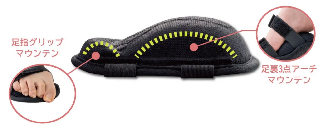 特長2.ダブルマウンテン構造が足指のグリップ力と足裏のアーチ形成をサポート
