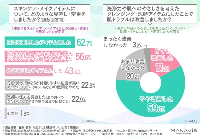 肌トラブルへの直接的な対策として、洗浄力や肌へのやさしさを考えたクレンジングや洗顔の見直しは有効性が高いことが明確に示されました。