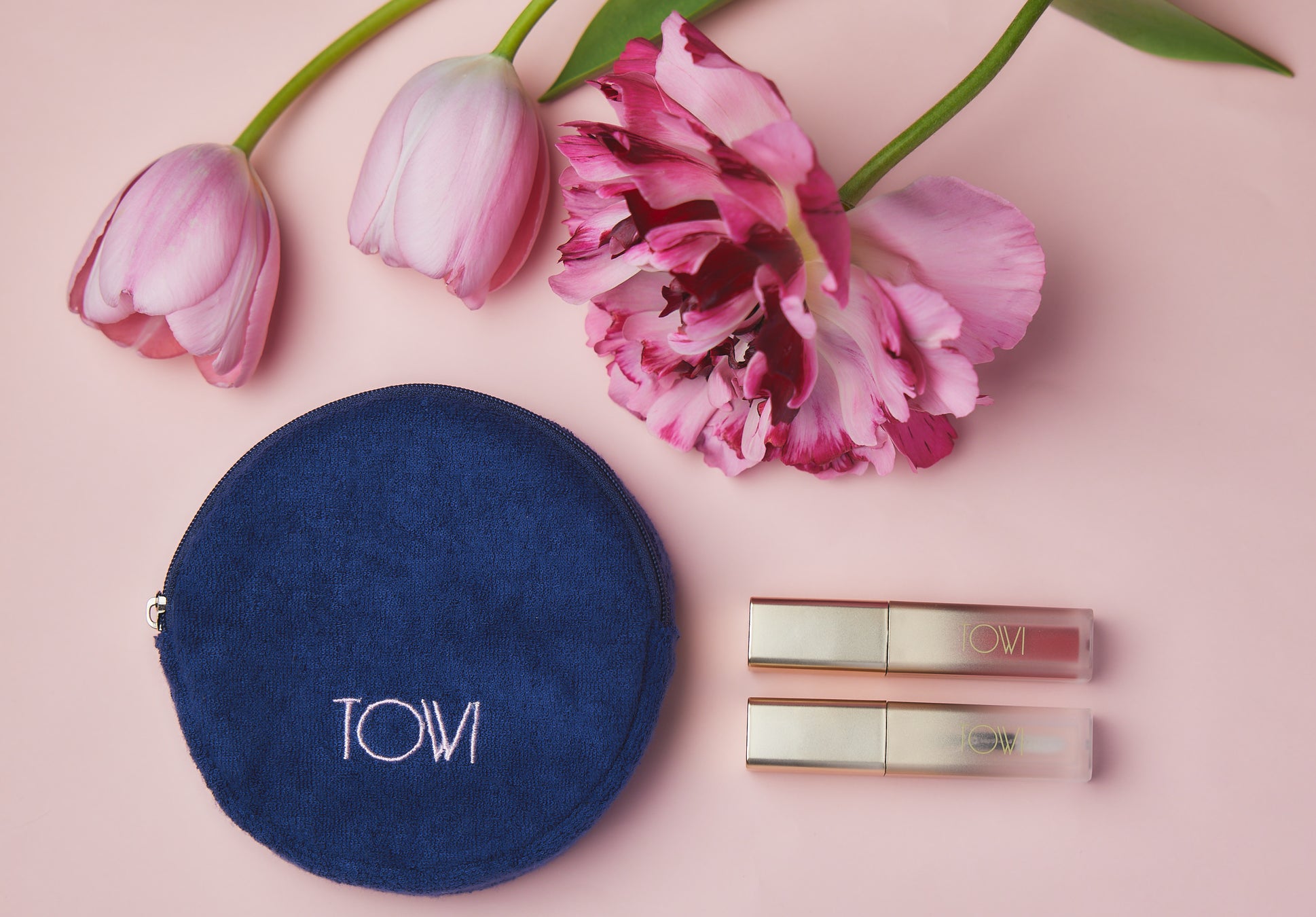 中川さんがデザインしたこだわりのオリジナルメイクポーチに、TOWIの人気シアーリップティント2色をセットにした限定アイテムです。