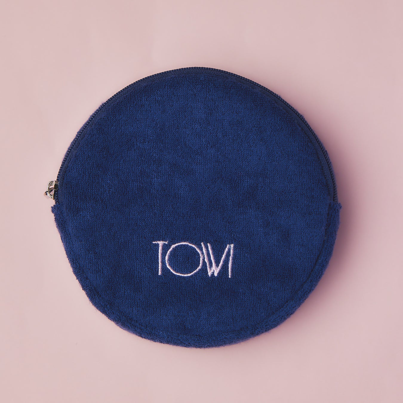 またコラボしたポーチも、性別や世代を制限せず使っていただけるものにしました。個人的に大好きなタオル生地を取り入れ、生地のネイビーと刺繍のピンクで、可愛いのにスタイリッシュな雰囲気を目指しました。そしてTOWIのリップはもちろん、ちょっとした小物も入る少し大きめのサイズにしました。