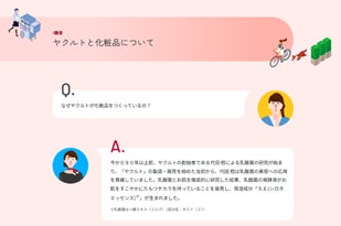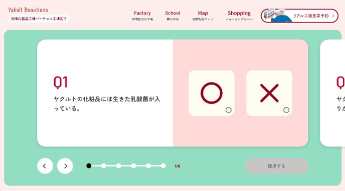 アテンダントへの質問形式で、ヤクルトの化粧品やお肌のお手入れ方法について楽しく学べま