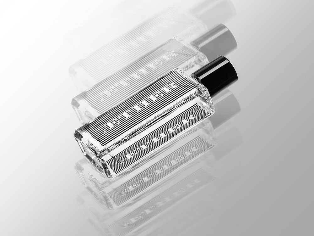 Aetherのためのボトルデザインで私が目指したのは、光と視線で戯れるオブジェをつくることでした。影と明暗、不透明と透明のコントラスト。静止していながら、私たちの動きとともに生きる“静かなアニメーション”。どの角度から見ても、ボトルは新たな表情を見せてくれるものへと仕上げました。