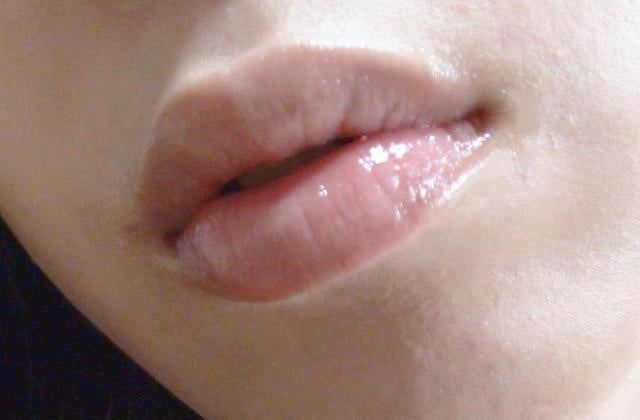 ●チップで唇に伸ばした後は、トントンと指でなじませるだけで簡単に唇の色補正ができます。