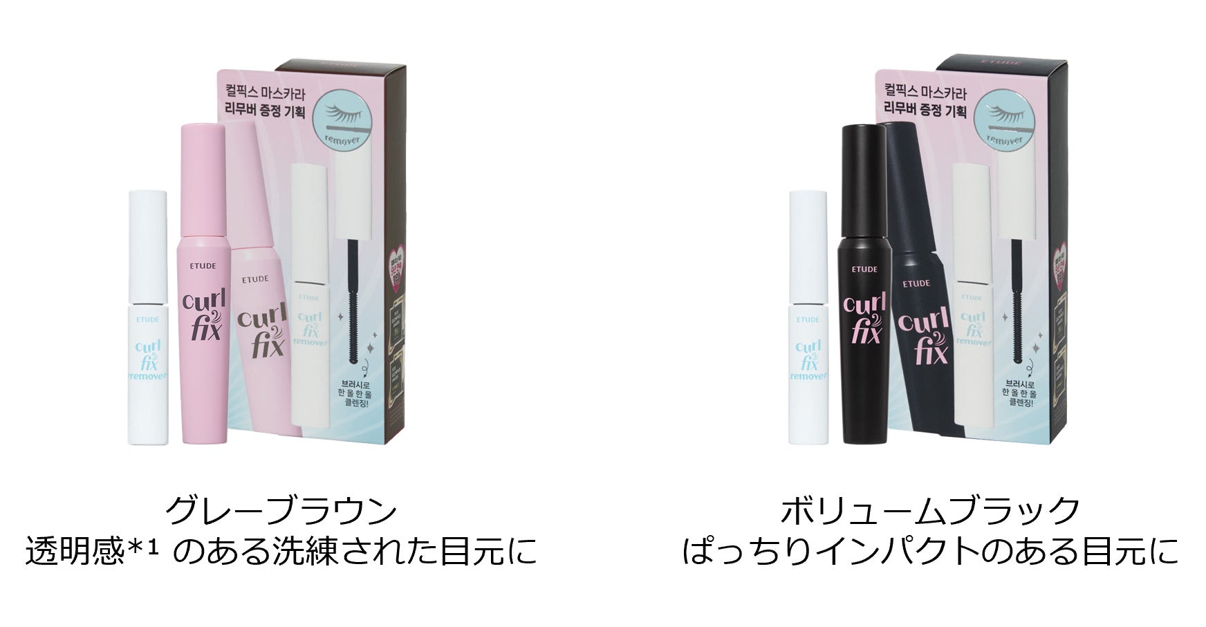 韓国コスメブランド「エチュード」は、24時間*¹ 上向きカールをキープするカールフィックスマスカラにミニサイズのリムーバーが付いた『カールフィックスマスカラ&ミニリムーバーセット』を2025年5月26日(月)より順次発売いたします(数量限定)。
