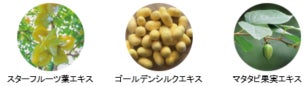 2.スターフルーツ葉エキス※1、ゴールデンシルクエキス※2、マタタビ果実エキスを配合。