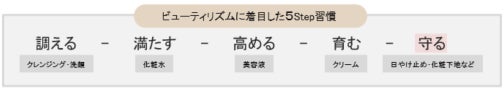 自らの肌をいたわるスキンケアタイムは、素肌のコンディションだけでなく心のリズムも調えてくれる大切な時間と考え、ビューティリズムに着目した5ステップスキンケアを提唱しています
