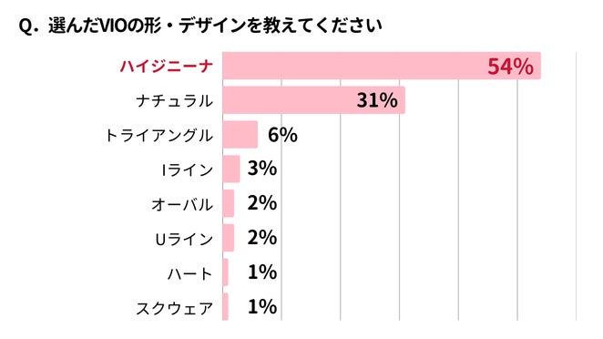 「ハイジニーナ(54%)」を選ぶ方が最も多く、形を残すことなくすべて脱毛するスタイルが主流になってきているようです。