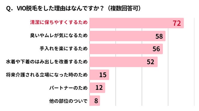 VIO脱毛をした理由で最も多いのは「清潔に保ちやすくするため」
