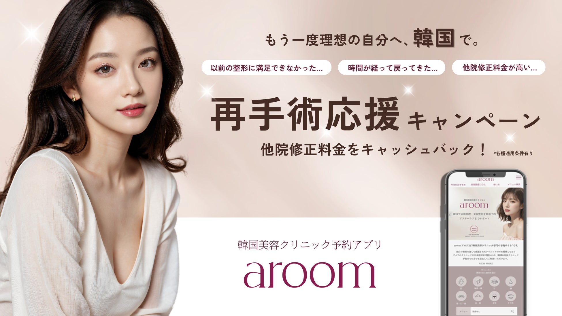 韓国美容医療サポートサービス「aroom(アルム)」を運営する株式会社CareCraft(東京都千代田区、代表:廣田瑞季、以下「当社」)は、これまで提供してきた韓国美容皮膚科の予約サポートに加え、美容整形の予約サポートサービスを本格的にスタートいたしました。また、それに伴い、再手術を検討中の方を対象とした「再手術応援キャッシュバックキャンペーン」を実施いたします。