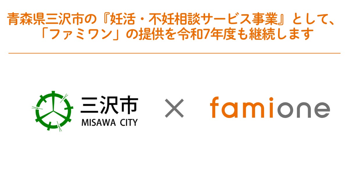 「子どもを願うすべての人によりそい 幸せな人生を歩める社会をつくる」をビジョンに掲げ、法人の従業員向け福利厚生や自治体の住民向け支援を行うヘルスケアサポートサービス「ファミワン」 https://famione.com/benefit/などを展開する株式会社ファミワン(本社:東京都渋谷区、代表取締役:石川勇介)は、青森県三沢市(市長:小檜山 吉紀、以下三沢市)からの委託を受け、「妊活・不妊相談サービス事業」において、令和7年度のサービスの提供継続が決定いたしました。