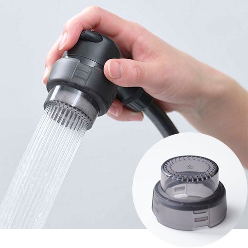 切替式小型シャワーヘッドの先端に取り付けて使用。手軽に炭酸メニューが提供でき、メニューの幅が広がります。