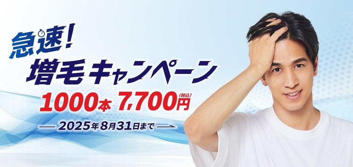 ゴールデンウィークや夏を迎えるこの時期に、“夏場の髪のボリューム不足が気になり始めた”“短時間※1でパッとボリュームを足したい”といった思いをお持ちの方などに、増毛を1,000本7,700円(税込)でご体験いただけるキャンペーンです。増毛は自髪と同じようにお過ごしいただけるため、旅行やマリンスポーツなどをされる時にも髪悩みを気にせずにお過ごしいただけます※3。