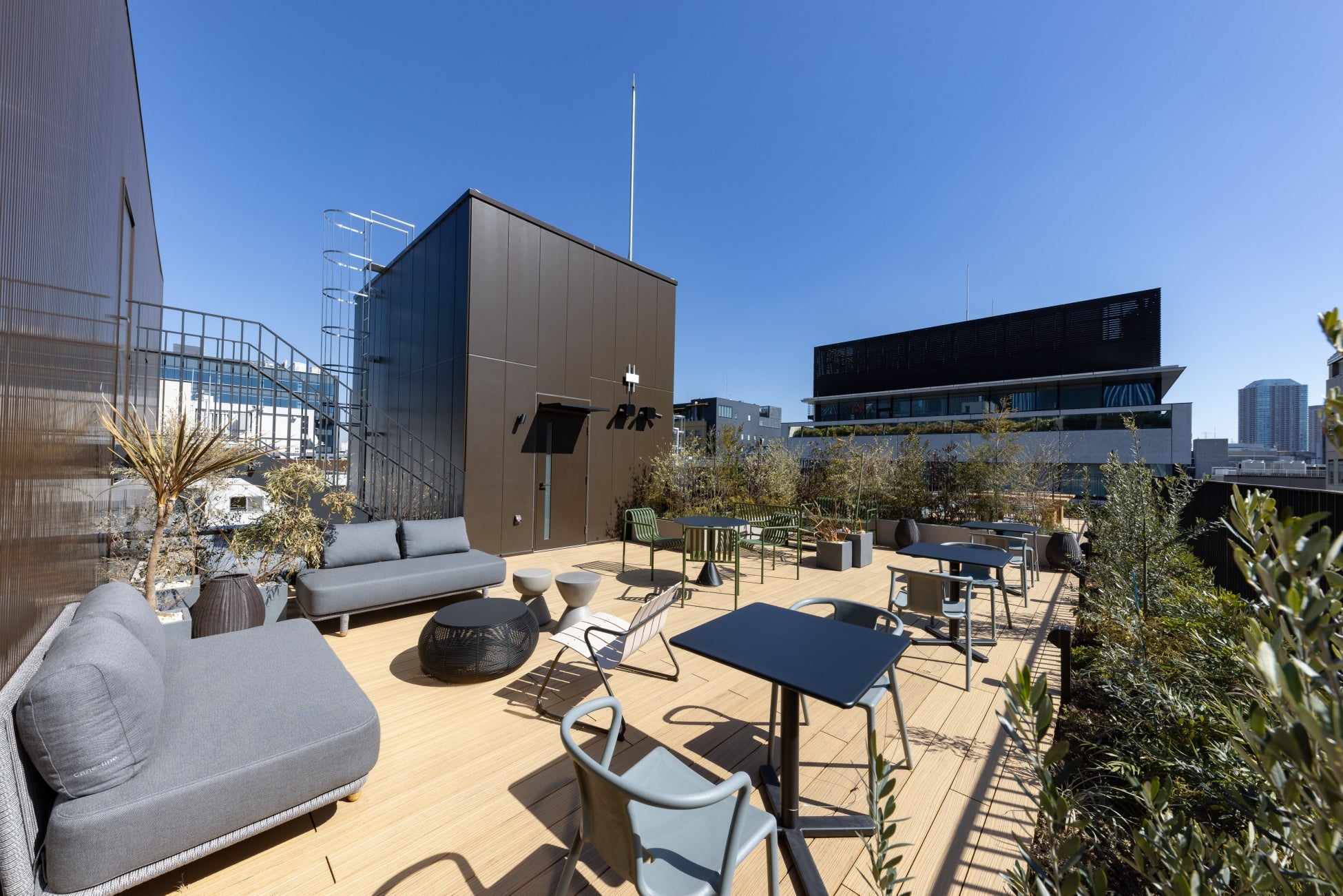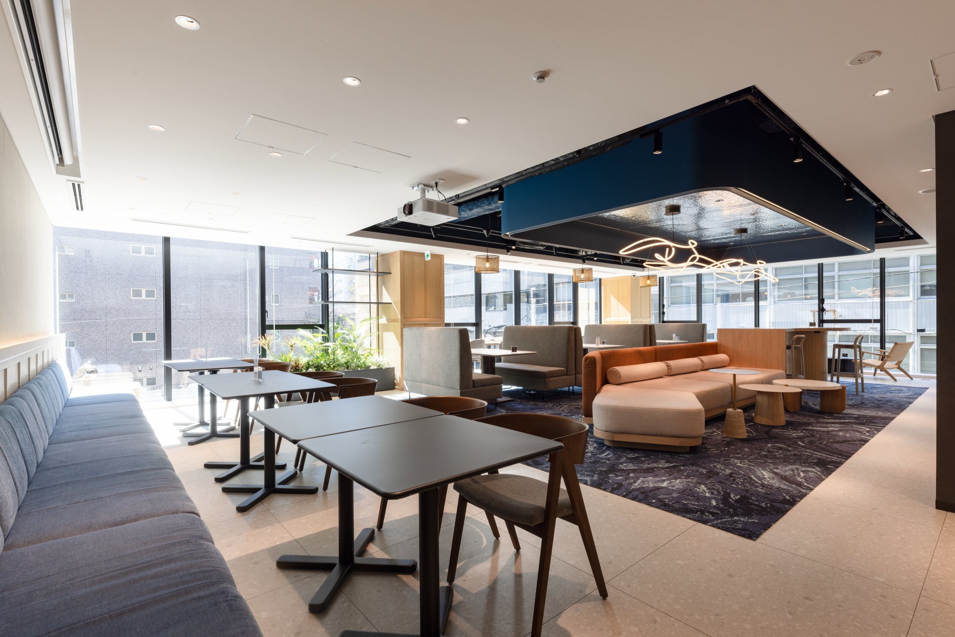 2025年3月に開業した「H¹O 八丁堀」には、執務スペースのほかに、開放的なラウンジや屋上テラスなどもあり、社員同士が活発にアイデアを交わし、コミュニケーションを図れる空間となっています。