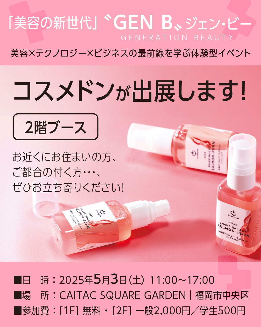 2025年5月3日(土)、福岡市のカイタックスクエアガーデンにて、次世代型美容イベント「GENERATION BEAUTY(GEN B)」が開催されます。株式会社ファーストイノベーション(本社:東京都中央区、代表取締役社長:木ノ根雄志、以下ファーストイノベーション)は、本イベントに協賛として参画しております。