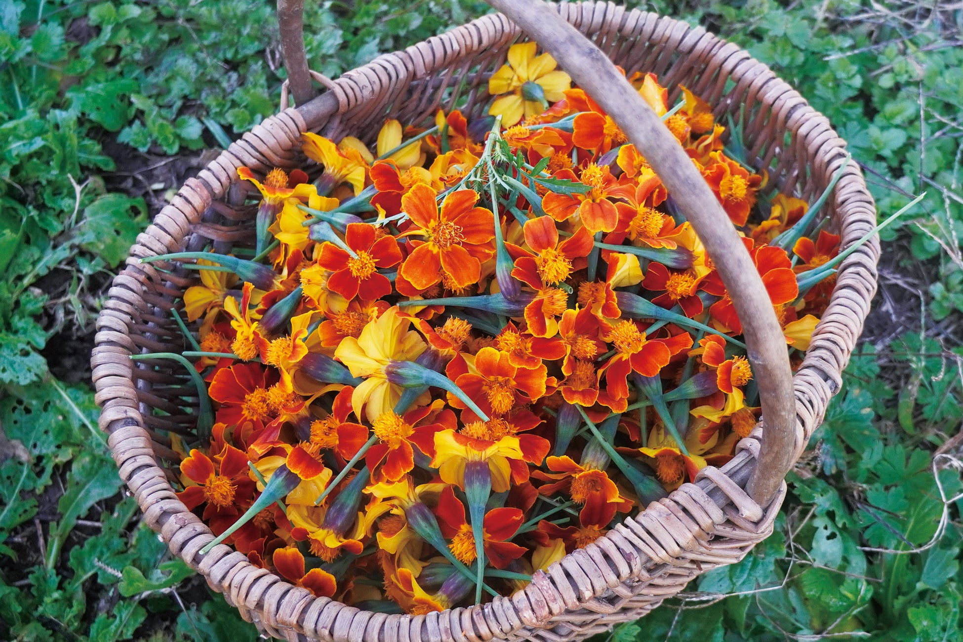 ハーブ・食用花:レモングラス、ローズマリー、オレガノ、タイム、ミント、レモンバーム、カモミール、レモンバーベナ、イタリアンパセリ、ステチィッオ、フィノッキオ、ディル、セルフィーユ、カレンドラ、矢車草、ボリジなど