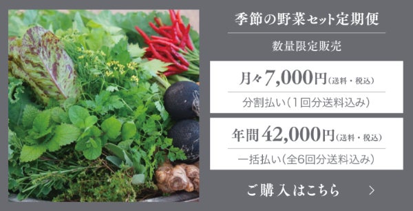 「ELECTORE FARM」の定期便では、旬の無農薬野菜やハーブの詰め合わせを6回に分けてお届けします。