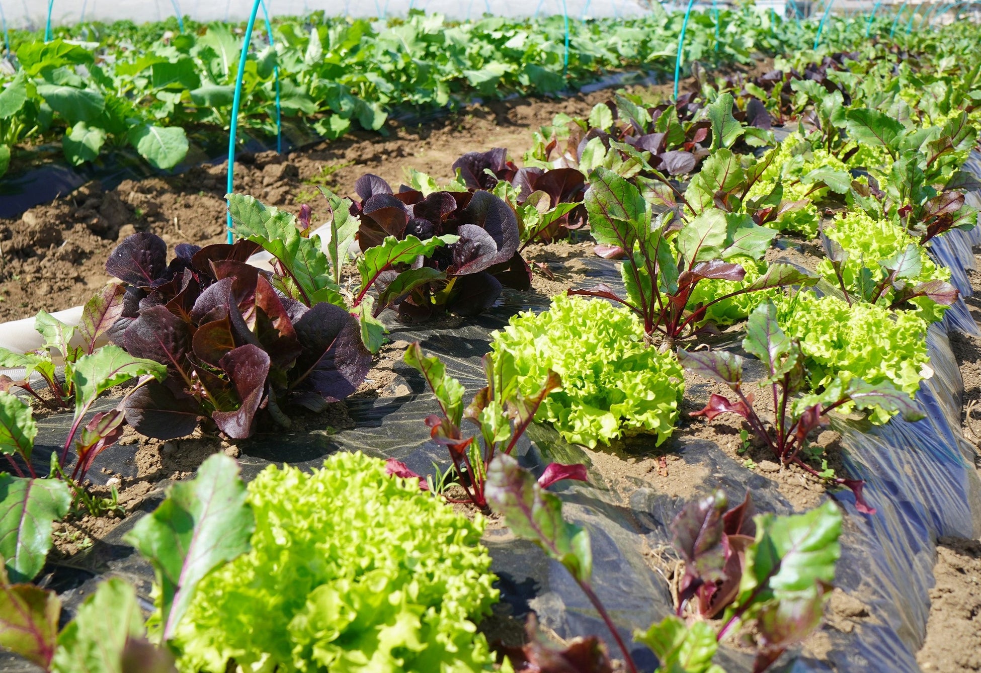 野菜:レタス、結球レタス、エンドウ豆、ケールミックス、かぶ、二十日大根、ジャガイモ、ズッキーニ、インゲン豆、人参、トマト、バジル、茄子、とうもろこし、空心菜、ニンニク、大根、サラダミックス、ピーマン、カボチャ、新生姜、白菜、水菜、法蓮草など