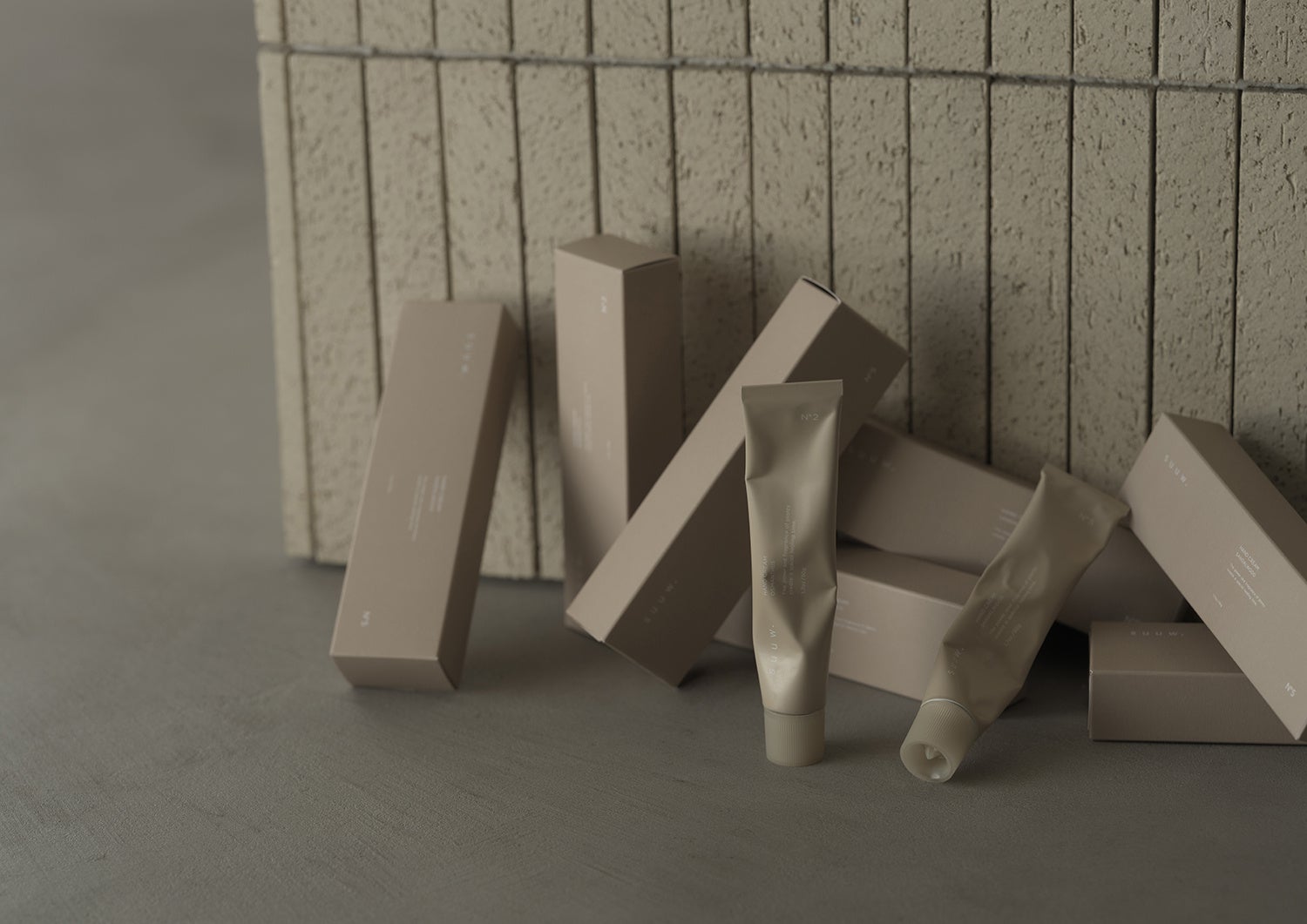 容器はリサイクルしやすいアルミチューブを採用。化粧箱にはバガス紙やFSC認証紙、印刷には植物由来のインキを採用するなど、できる限りリサイクル可能な素材を採用し、環境にも配慮した製品作りを行なっています。