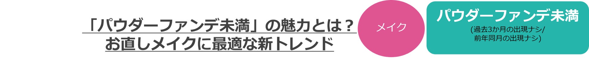 メイクの話題では「パウダーファンデ未満」というワードがトレンドインしました。 @cosmeではここ数年、パウダーファンデーションの注目度はやや下火ですが、フェイスパウダーの人気は継続中です。中でもパウダー以上、ファンデーション未満程度の補正力があるものが人気のようです。お直し需要の増加も後押しとなり、今後ますます人気を集めていく予感がします。